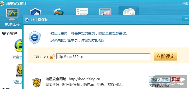 我的更新到最新没有问题啊,请尝试用瑞星安全助手的主页锁定功能