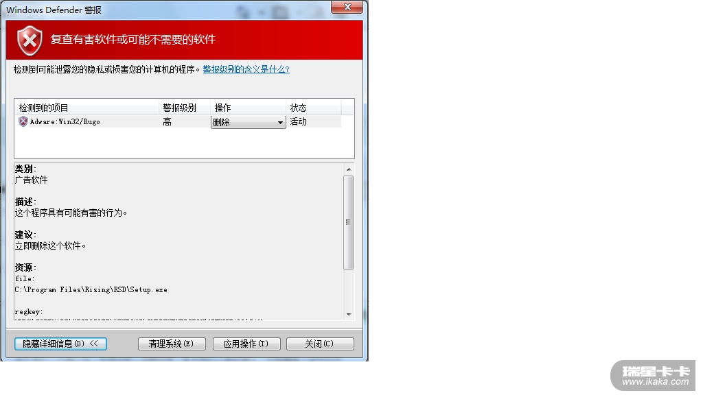 我拷!这是瑞星自己提供的Adware:Win32/Rugo???求帮助,求解释