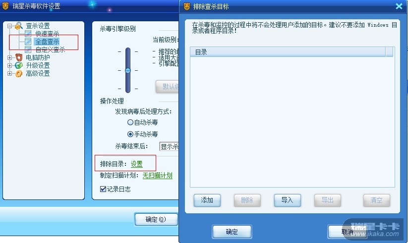 在全盘查杀设置里有无设置排除目录