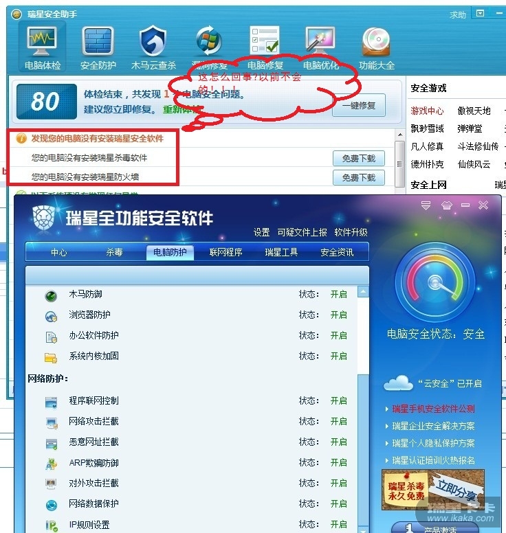 是最新版的,只装了 瑞星安全助手 跟瑞星 全功能安全软件