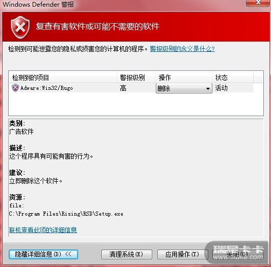 WIN7自带的DEFENDER提示有恶意软件请工程看,以前都是好的