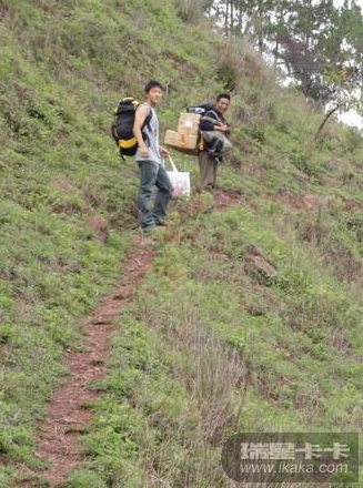 在这个地方,妇女们操持着里里外外的家务。一个星期里的最后一天,她们还要肩背着沉重的东西如野山菌、荞子和土豆等,在不平整的山间小路上吃力地行走几个小时拿到集市上去变卖换成微薄的现金收入。在回山村的路上,她们给我们这两个外来的父子带路爬山三个多小时。她们爬过一座又一座的山,脚下松动的石子不停地滚落山去。