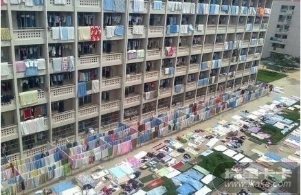 学生晾晒被子和衣物,“铺天盖地”成为一道别样的风景。