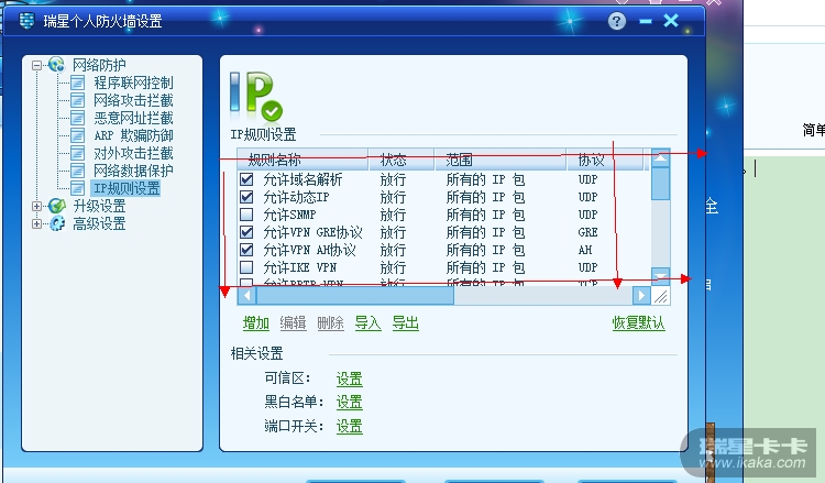 瑞星防火墙IP规则默认还是手动全部打上勾?全部打上勾 安全 还是默认安全啊?求大大告知。。。。