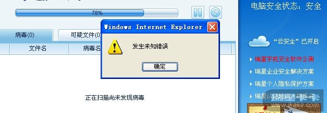 IE7 XP SP3系统,最近用瑞信杀毒的时候,老是提示Windows internet explorer 发生未知错误