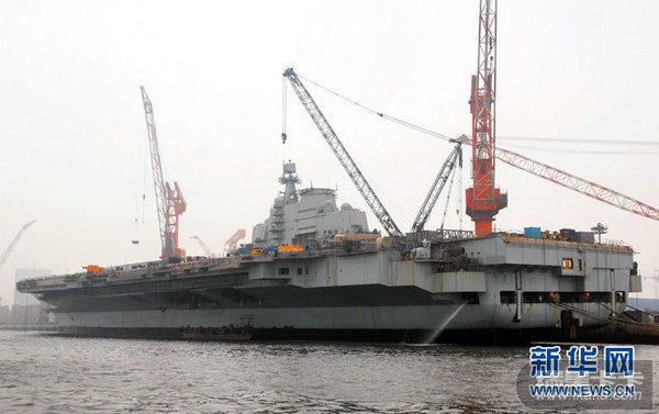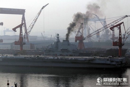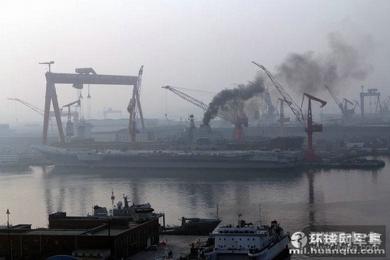 资料图:航母改装现场。