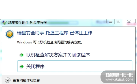 每次开机 启动瑞星卡卡进行安检时就会出现 托盘程序停止工作····还有为什么瑞星卡卡开机启动 有时启动有时不启动:kaka13: