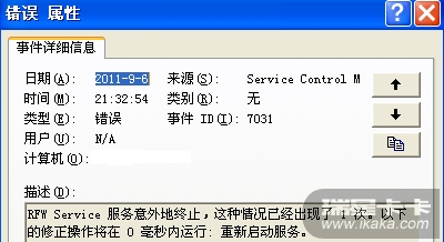 而我在事件查看器——系统事件中查看到的,不仅有关于RavMonD.exe应用程序错误的三次事件记录,而且在RavMonD.exe应用程序错误的事件之后竟出现“RFW Service意外终止”的错误事件。不知是怎么回事?