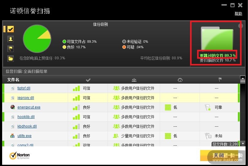 约 90%的 文件 ,因为是 安全的 ,都被 诺顿 自动略过了!!!