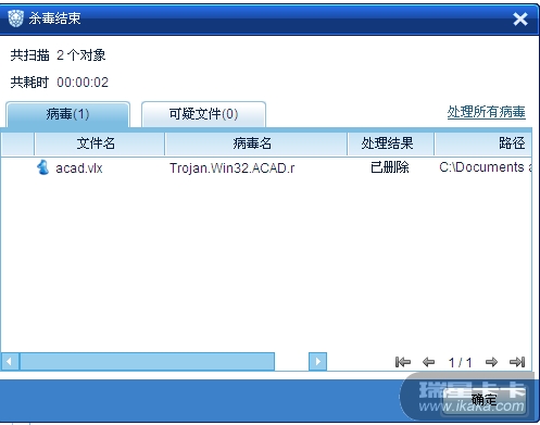 瑞星全功能安全软件版本:23.00.44.19可以查杀。将查杀级别调到最高进行查杀。