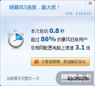 7.看贵公司的论坛的时候,经常有人抱怨瑞星启动速度慢的问题。仿照暴风影音的做法来个速度比拼;
