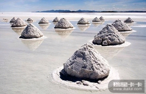 乌尤尼盐沼 阿尔蒂普拉诺(或称“高平原”)是玻利维亚安第斯山区的一个大高原,海拔在3000米以上。在高原南端有一些冰融化时留下的盐湖,而在1万年前最后一次冰期未,湖水已逐渐流失。最大并且令人印象最深的湖泊是乌尤尼盐沼,每年冬季,它被雨水注满,形成一个浅湖;而每年夏季,湖水则干涸,留下一层以盐为主的矿物硬壳,中部达6米厚。人们可以驾车驶越湖面。湖面像镜子一样闪闪发光,尤其是在雨后