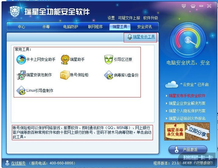 在使用瑞星杀毒软件的时候,有个不是很成熟的建议。建议把里面所有的东西集成到瑞星安全助手里面去。