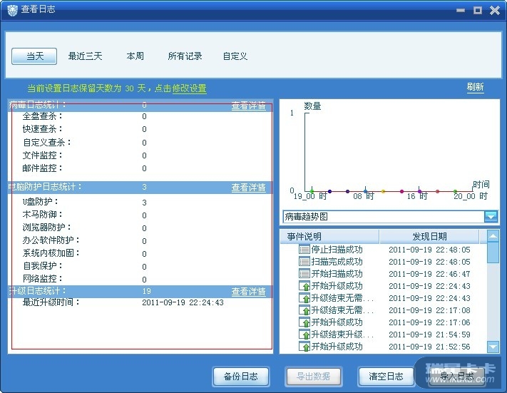 说明:简单一点就行。不要弄得太复杂了。因为我个人从事的和电脑相关的工作,有时会没事(发呆)的时候,看看瑞星的日志。打发一下无聊的时间。(第一)