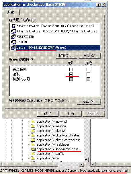 HKEY_CLASSES_ROOT\MIME\Database\Content Type\application/futuresplash 和 application/x-shockwave-flash