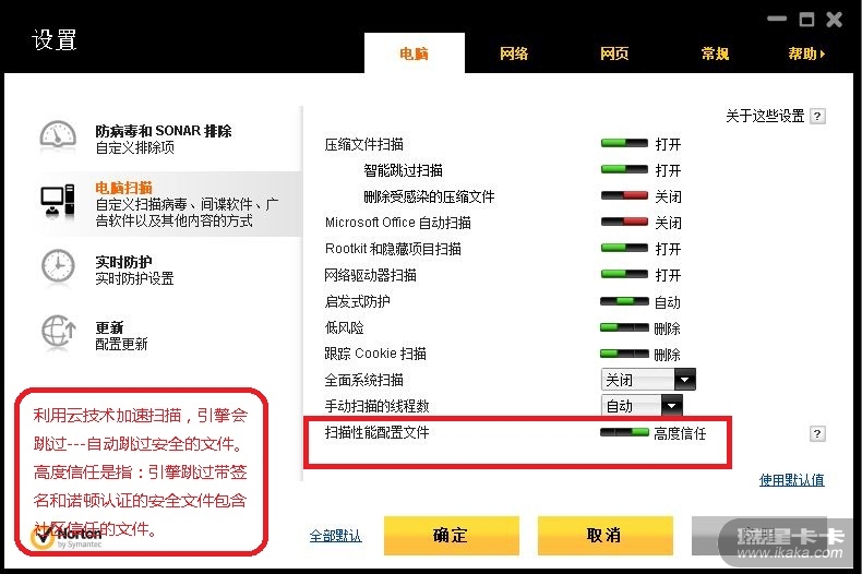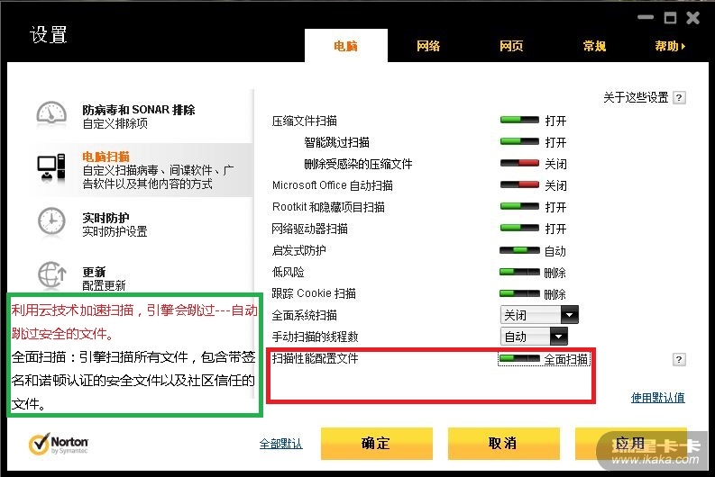 诺顿的 监控 和 扫描 使用了 云技术,即 引擎在扫描时 会智能跳过安全的文件。