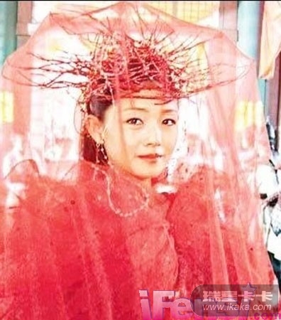 《仙剑奇侠传》里的刘亦菲扮演赵灵儿——一个有着蛇妖血统的苗族少女, 所以她的新娘装头饰有异于汉族传统的新娘头冠。