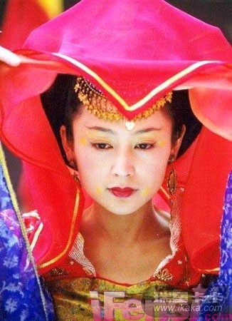 千万不要误会《大明宫词》里的陈红脸都没洗干净就上了花轿哦, 唐代的女子面妆流行点面靥和贴花钿,在脸上涂上色彩搞面部彩绘或者贴上金箔剪成的小花小草是潮流。虽然《大明宫词》里的台词生吞活剥莎剧不中不洋,可是这个新娘面妆还是很有点历史背景的。