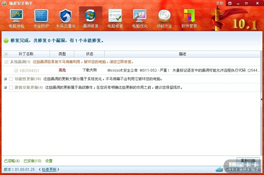 建议楼主下载此补丁后手动更新看是否正常。