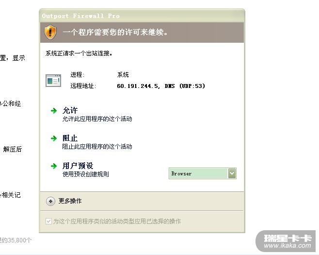 今天打开大蜘蛛扫描器6.0版打开更新,我的防火墙outpost7.5弹出窗口显示系统不断的发出向外连接原因未明,我发图大家给看看!懂得人给说说原因,感谢了!