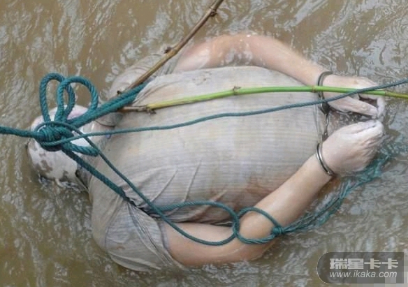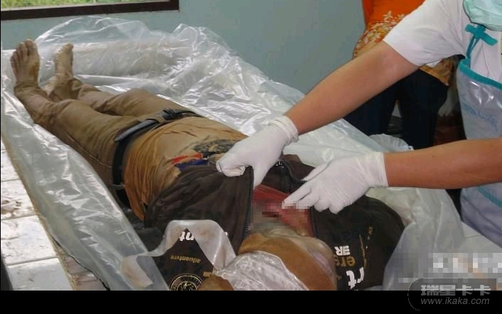 图为一具被打捞上岸的遗体,头部被胶带缠裹。