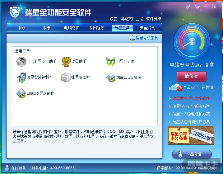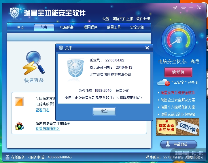 以前安装的旧版本瑞星杀毒软件无法卸载