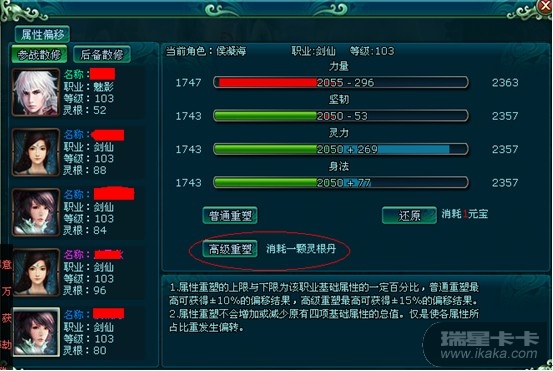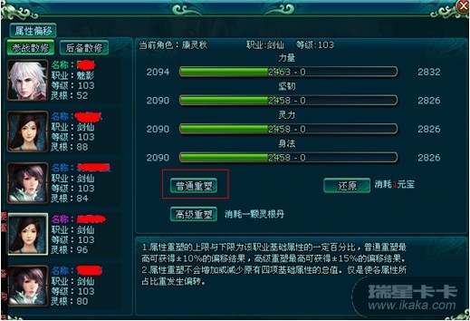 、只针对角色的基础属性(力量、坚韧、灵力、身法)进行重塑;2