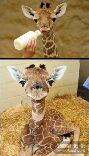 长颈鹿小时候这么萌啊 。。吃奶嘴神马的最可呐了、、