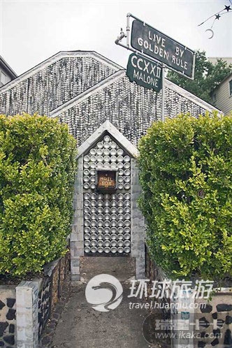 美国休斯敦的一名男子及其伙伴使用他们喝掉的5万个啤酒罐建造了一所“啤酒罐房子”,前后共用了18年时间。房子的墙壁、山墙、花园、房顶和门全部是用啤酒罐串在一起或垒起来的。