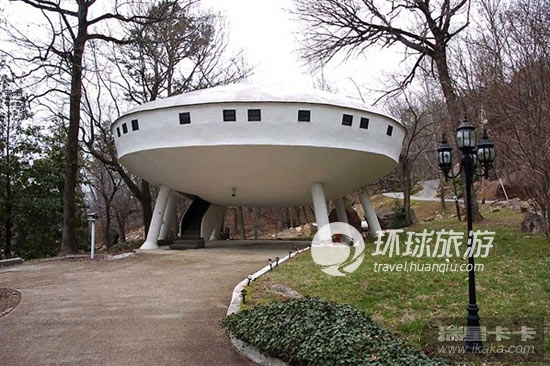 在美国首次月球登陆期间,UFO形状的房屋曾风靡美国大陆,但它们大多数都是预制活动房。而这座年位于田纳西州、建于1970的飞碟房屋却是实实在在的房子,前门处还有一只可伸缩的楼梯。