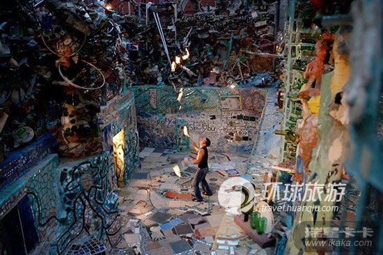 美国费城的一位艺术家从1994年到2008年用了14年时间在其工作室旁边的一片空地上建造了一块艺术园地。这里有迷宫一样的马赛克装饰的画廊、通道和洞穴,以及用捡来的自行车车轮和炊事用具等制成的雕塑。这片私人园地目前对公众开放,创建者偶尔也会过来进行马赛克作品的创作。