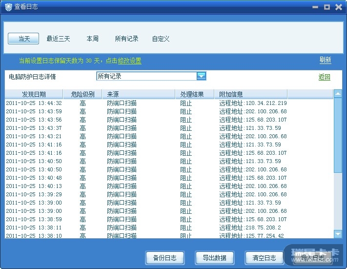 提示被扫描端口和被ping入!仅仅七天,上网时长也就只有十几小时就被扫描端口一百多次!远程ip地址也没一个是本地的!请问大侠们这是怎么回事啊?!