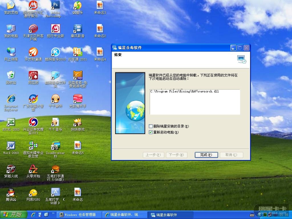 3、最后在只装瑞星2012的情况下,也一样的卡;