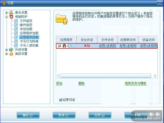 当然瑞星可以学习卡巴,初次安装 卡巴 自动扫描 系统常用软件 ,并将常用的程序 都添加到 应用程序控制中 控制起来