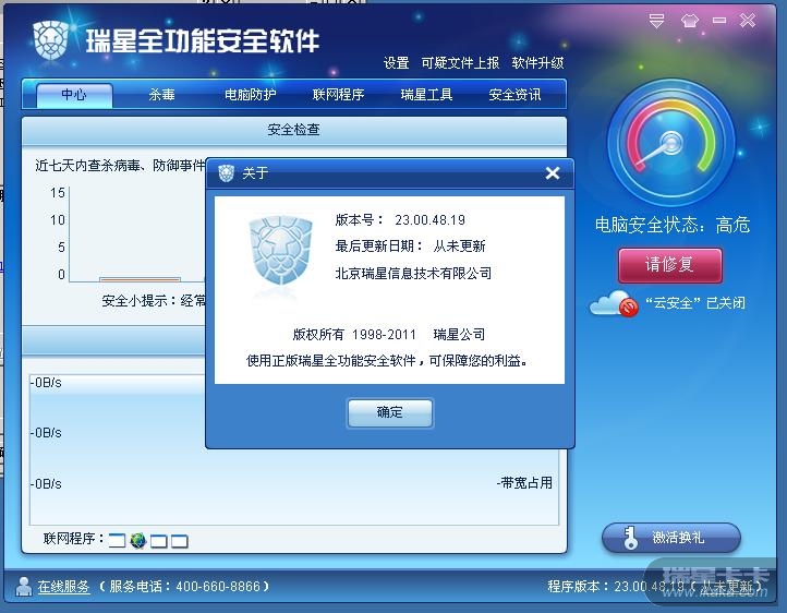 瑞星版本号:23.00.48.19,未更新过