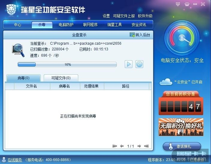 今天,我把瑞星升级到了最新的版本,但是,在使用全盘杀毒时,在查杀C盘的Program文件里是老是有一些文件杀不过去,总是重复的杀,也不提示是病毒,我先截图了,(因为我是菜鸟,不知道怎么找到那些文件)。于是我用卡卡的诊断日志,就出现了一下提示,我生成压缩文件了,还有导出了文本文档。请高手给予指教。谢谢。