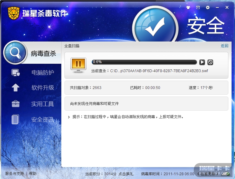 瑞星安全助手的自定义换肤也要改一下,图片不能光改变最顶端的背景,也要像2012一样,改变整体。上图: