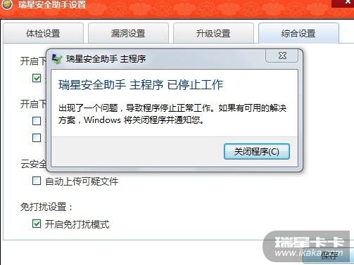 瑞星安全助手设置的问题,点保存后助手瞬间崩溃!