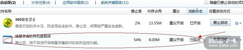 但是关闭这个服务,又怕瑞星监控没打开不安全,所以设置了延迟启动这个服务,没想到重启后果然解决了这个问题