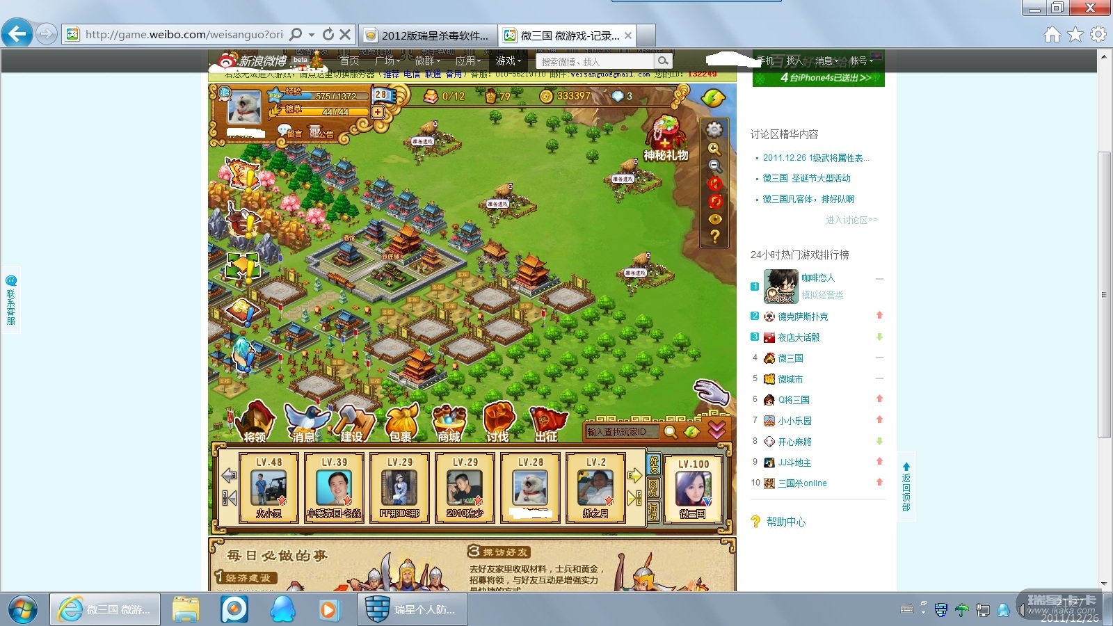 进过测试新浪微博的网页版网络游戏还是可以很顺利的玩的