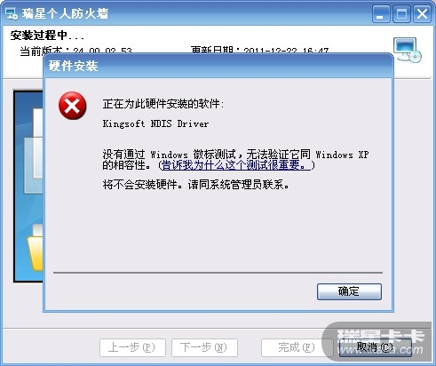 说明:安装到这里出现问题,估计电脑上面同时安装了金山杀毒软件的可能吧!我也说不准。有谁知道的话,请帮我分析分析。谢谢!