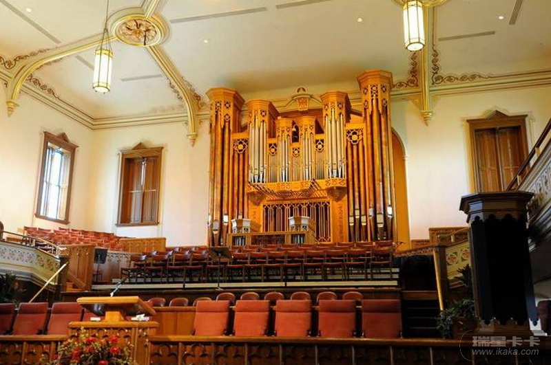 聚会堂是圣殿广场上外观最华美,色彩最绚丽的一座建筑物,建于1877年。