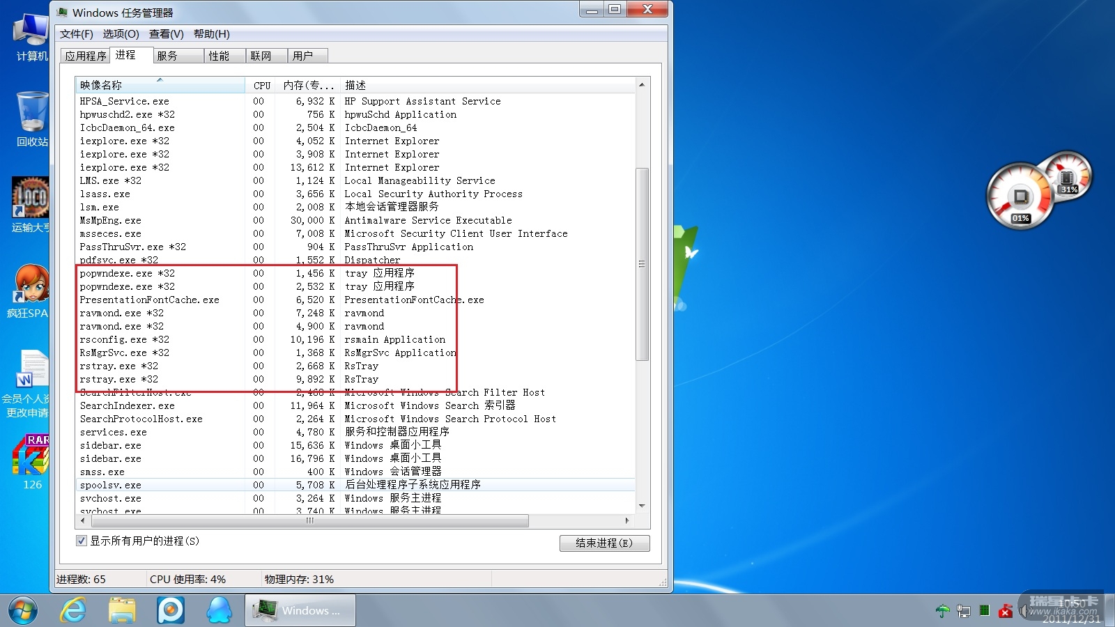 然后我就猛点开始菜单的RFW主程序,结果后台出现4、5个主程序进程,就是不见防火墙主页面跳出来,也不见托盘:kaka7: