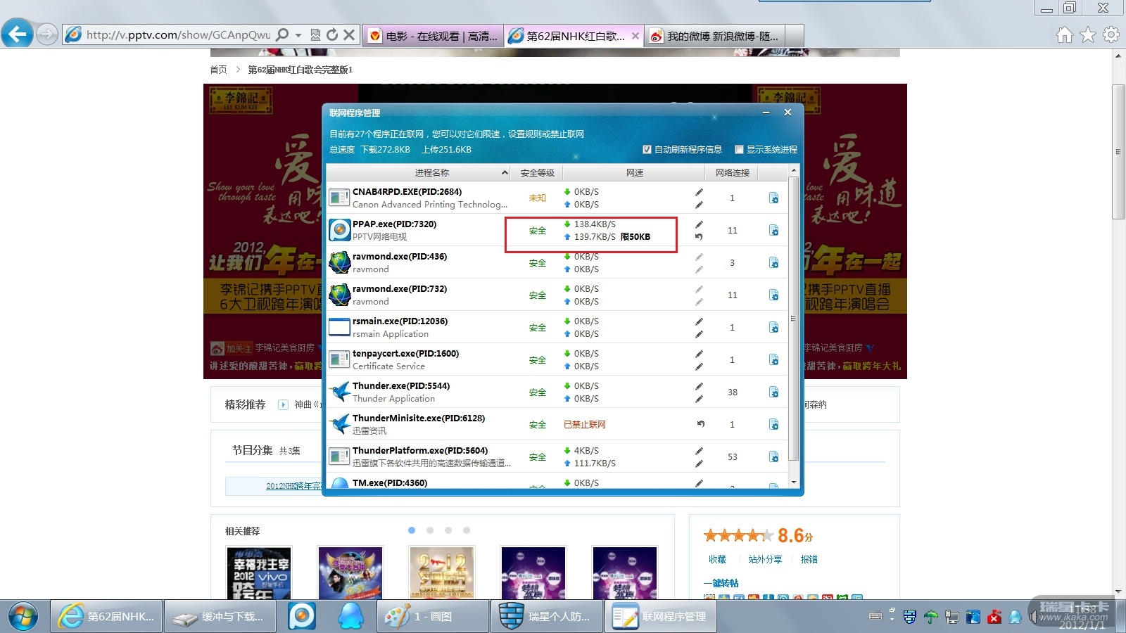 防火墙的限速功能只能限制TCP连接,无法限制UDP连接,PPAP这种视频客户端工具一部分连接是UDP协议,因此无法限制。
