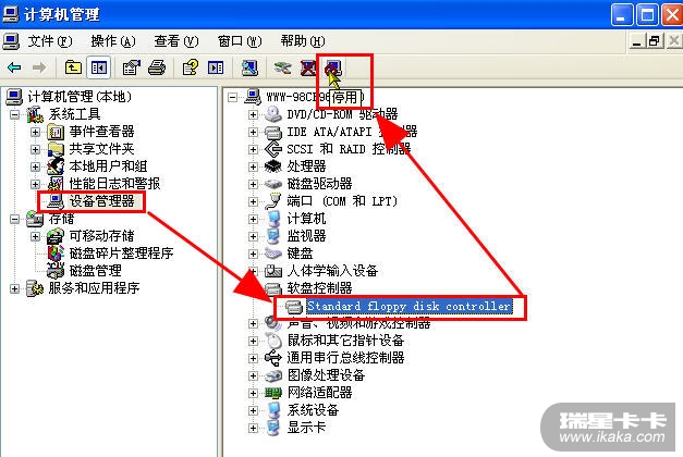 请试试以下操作方式,在“开始”→“运行”→输入“%windir%\system32\compmgmt.msc”回车、打开计算机管理参见下图片红框所示意
