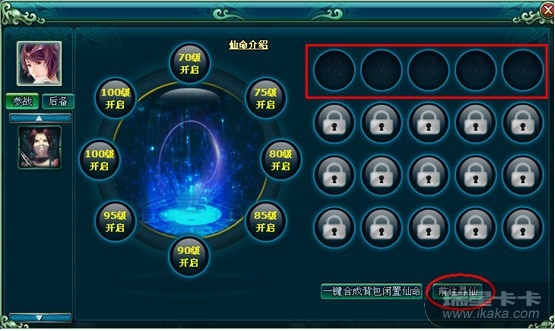 仙命背包区域初始栏位有5个,可通过消耗元宝开启其他栏位,最多可开启20个。玩家点击右下角的“前往寻仙”即可开始寻仙之旅。