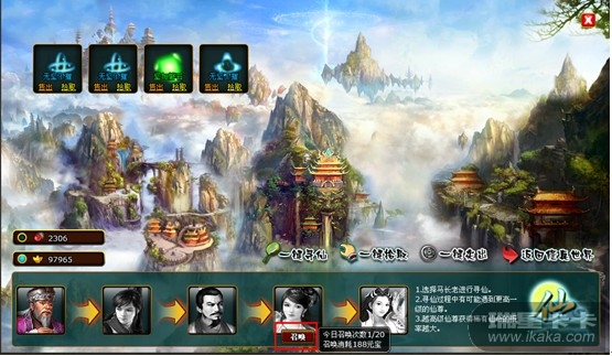 玩家可通过消耗元宝,直接召唤4级仙人开始进行寻仙,每天的召唤上限为20次。