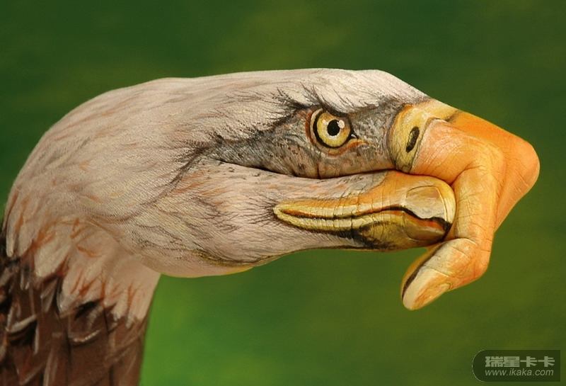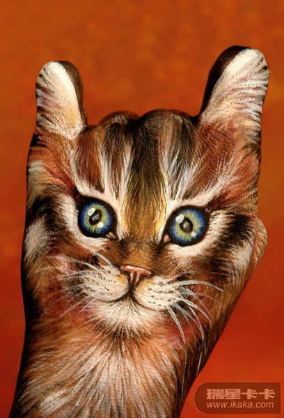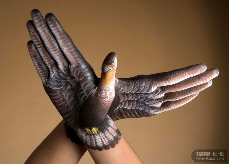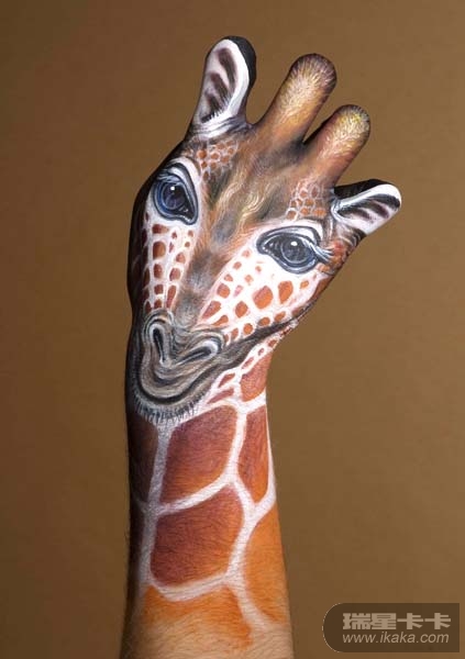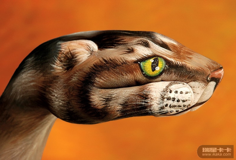 意大利人圭多·达尼埃莱(Guido Daniele)是个喜欢尝试新事物的艺术家,他曾经是个油画家,经常在白纸上画素描,做过人体彩绘,现在他将艺术转移到了手上。他可以利用人手作为底板,画出各种各样让人惊叹的动物图案。
