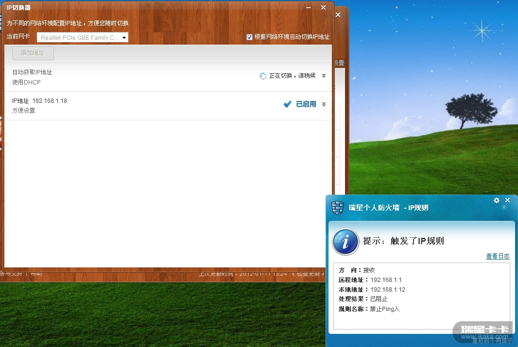 切换到地址2之后,再切换回默认的地址,防火墙提示触发IP规则:kaka6: