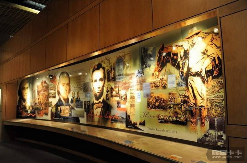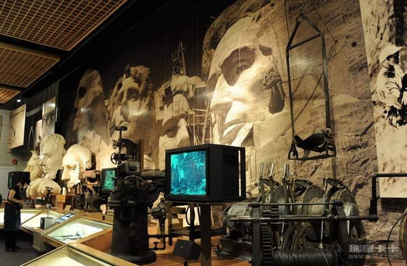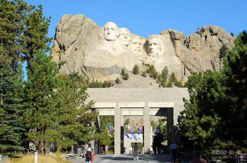 美国南达科他州有一座拉什莫尔山,山高1800多米,刻有华盛顿、杰斐逊、罗斯福、林肯4个巨大的石雕像,石像的面孔高18米,鼻子有6米长。4个巨像如同从山中长出来似的,山即是像,像即是山,巨像与周围的湖光山色融为一体。